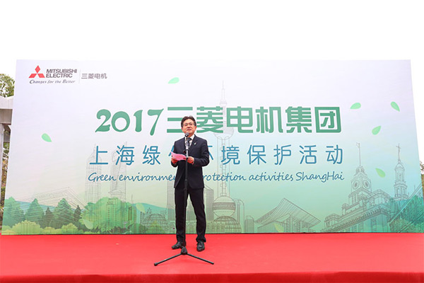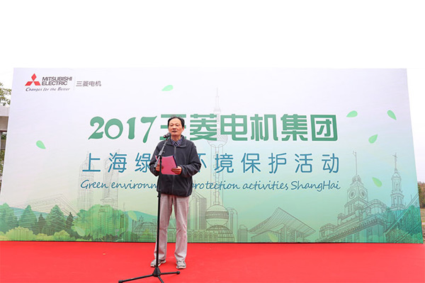上海市普陀区环境保护局副局长蒋坚锋先生也发表了动员讲话:“植绿护绿,让我们多植一棵树、多种一片草、多养一盆花、多添一片绿,共建良好生态环境道德规范。”同时,他还感谢了三菱电机集团热忱参与本次植树公益活动,将象征希望与生命的绿色播撒在此,用实际行动为上海成为‘宜居城市‘这一城市规划作出自己的贡献,为上海增添了新的生机和色彩。