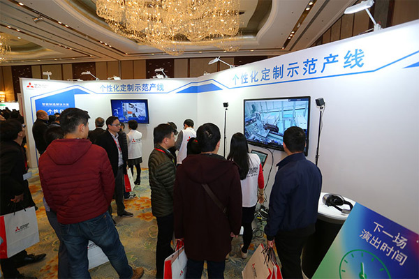 展会上,三菱电机将其技术和产品划分成,“企业品牌•核心技术”、“智能制造解决方案”、“绿色生活解决方案”三个主题展区进行展示。