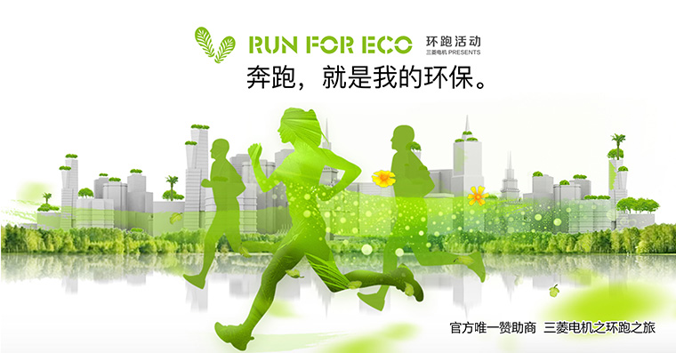 三菱电机 RUN FOR ECO 环跑活动是由三菱电机作为官方唯一赞助商的跑步活动。旨在为各关心环境问题的运动者们提供新形式的社会贡献型跑步活动。通过累积跑步距离和线上游戏积分换算成相应的善款。由三菱电机捐款给中华环境保护基金会,用以支持中国的环保事业。